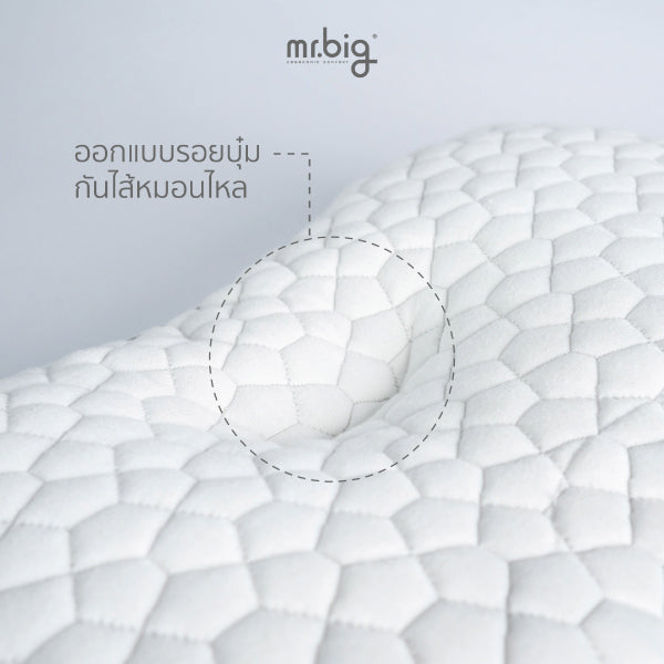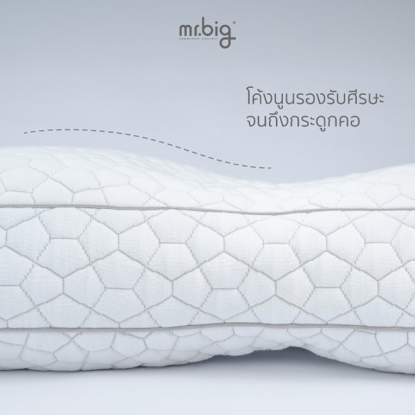 ออกแบบให้เหมาะกับสรีระการนอน ความยาวส่วนนูนคำนวณจากสรีระศีรษะถึงกระดูกคอ ทำให้รองรับเต็มคอ ช่วยจัดตำแหน่งศีรษะ-คออย่างเป็นธรรมชาติ รอยบุ๋มช่วยไม่ดันท้ายทอยขณะนอนหลับ ผสมผสานโฟมนวัตกรรมจากถั่วเหลือง มอบความนุ่มแน่นสม่ำเสมอ กลิ่นน้อย ระบายอากาศดี ผ้าหุ้มอ่อนโยน เพื่อคุณภาพการนอนที่ดีขึ้นตั้งแต่คืนแรก