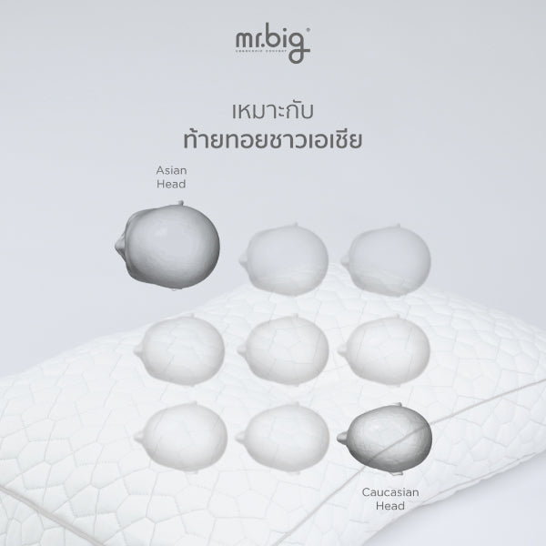 • ความยาวของส่วนนูนคำนวณให้รองรับตามความยาวของท้ายทอยต่อเนื่องถึงกระดูกคอ