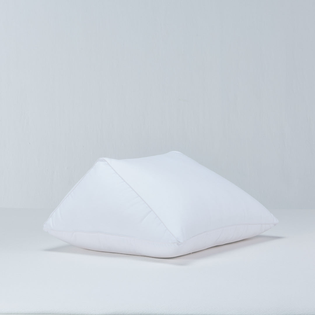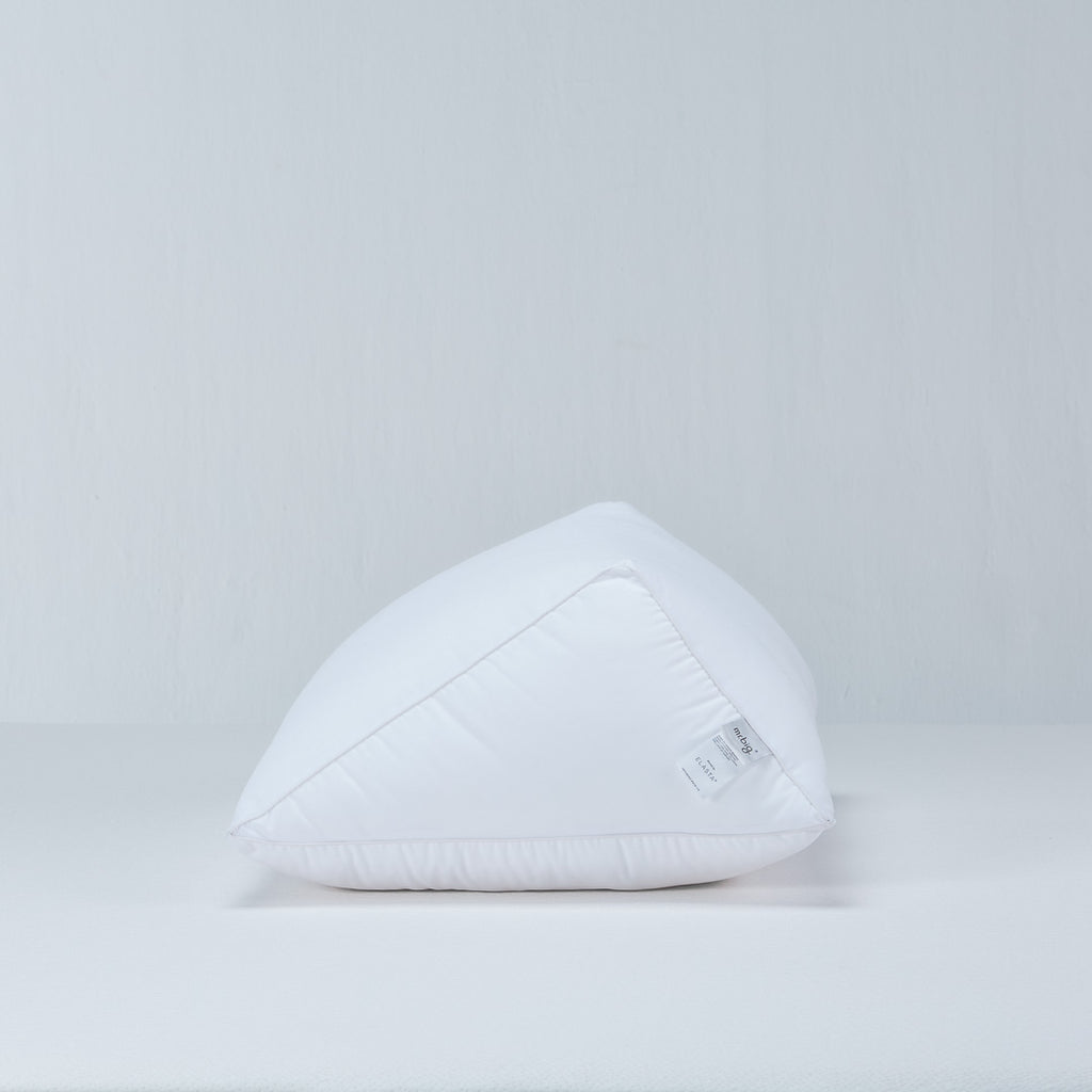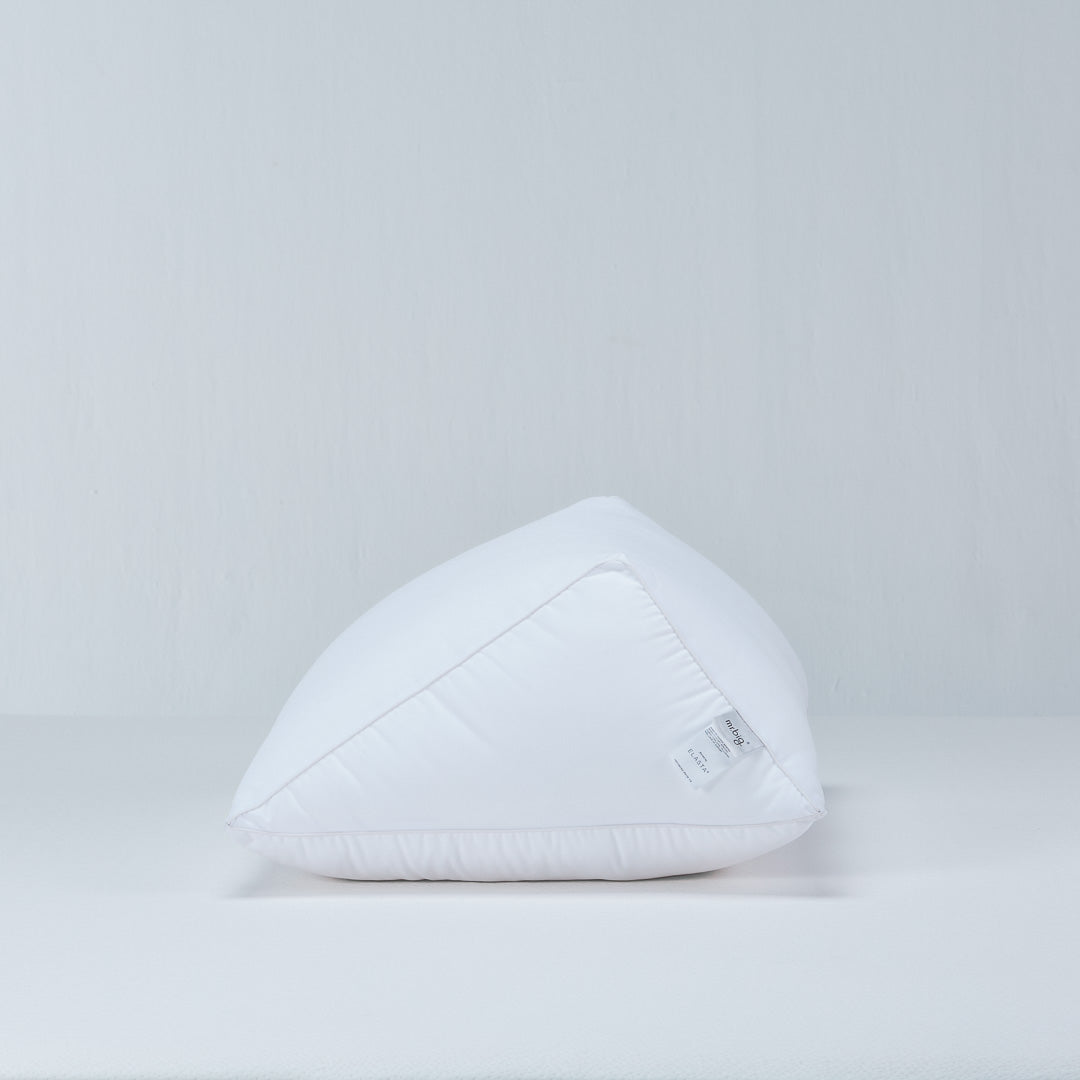 หมอนสามเหลี่ยมที่ใช้หนุนเข่าโดยเฉพาะ ออกแบบมาเพื่อให้เข่าอยู่ในองศาที่งอเล็กน้อย 25° ถึง 30° ซึ่งเป็นช่วงที่สบายที่สุดของเข่า เพิ่มพื้นที่ผิวสัมผัส ทำให้การรองเข่าสบายกว่าการใช้หมอนทั่วไป และนุ่มโอบเต็มขาและน่อง