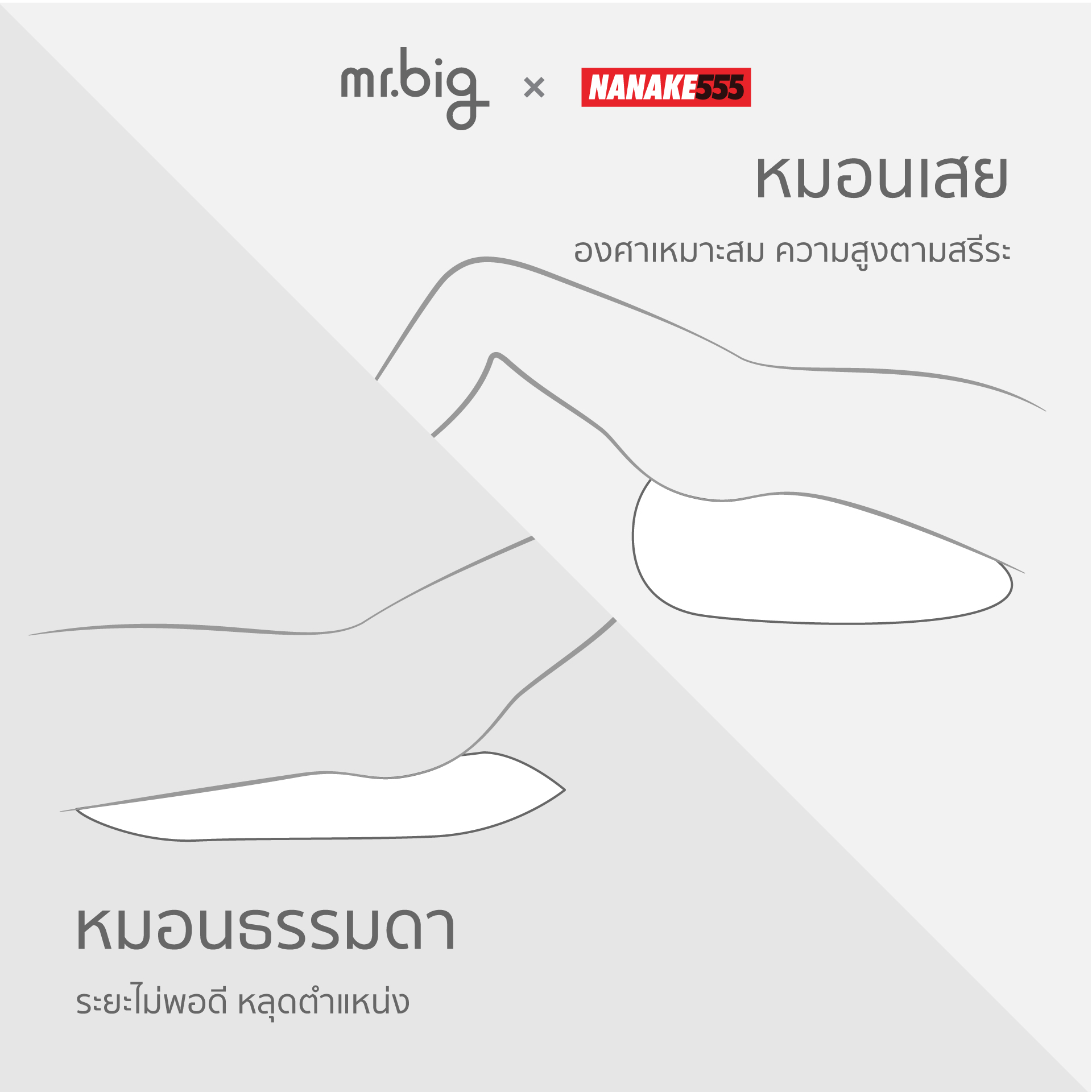 mr.big is a brand designed by Thai physical therapists and produced in our own factory. We use Asian body shape data to determine the design and size of the product to fit the user's body to prevent injury and maximize benefits (fitme™).